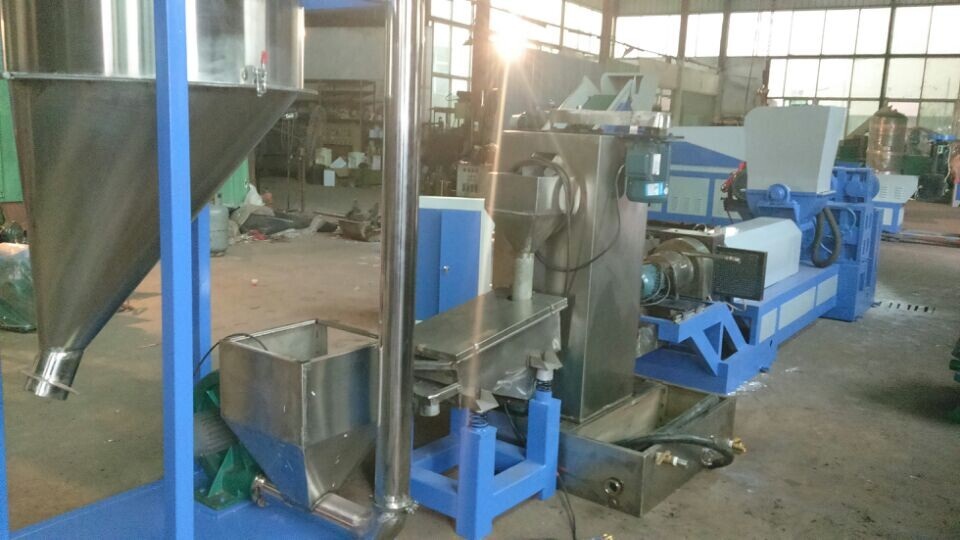 該機(jī)組可選配自動(dòng)喂料,自動(dòng)破碎式或人工喂料式,旋刀水切,自動(dòng)脫水,震動(dòng)分粒,風(fēng)機(jī)干燥及不銹鋼儲(chǔ)料罐。采用該機(jī)組生產(chǎn)的顆粒均勻性好,干燥程度高。可用于LDPE,HDPE,LLDPE,PP,ABS,EPE,EPS,EVA塑料的回收造粒。
